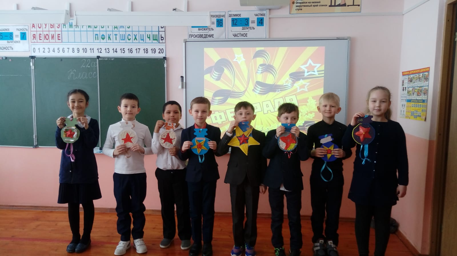 Уже стало доброй традицией каждый год, в конце зимы отмечать праздник – день защитника Отечества. Праздник 23 февраля в школе – хороший повод для воспитания у учащихся чувства патриотизма, сопричастности к лучшим традициям своей Родины, формирования гордости за славных защитников Отечества. Во все времена Россия славила своих героев — воинов, отстоявших независимость, честь и достоинство Родины. В канун праздника 22 февраля 2022 года было подготовлены и проведены мероприятия, которое позволило ребятам узнать больше о людях защищающих нашу страну. С большим интересом дети изготовили подарки для любимых пап, дедушек, старших братьев. Была оформлена фотовыставка «Отцы-молодцы» , прошел конкурс рисунков. Музыкально-спортивное мероприятие, посвященное Дню защитника Отечества, проходило в форме игры «Школа начальной военной подготовки» и состояла из различных эстафет. Дети рассказывали стихи, пели песни, танцевали, а также показали ловкость и мужество. Были подготовлены видео - поздравления нашим выпускникам , которые служат в рядах вооруженных сил. Ученик 7 класса провел экскурсию в кабинете Героя России. Дети проявили большую активность, подарили друг другу хорошее настроение, радость общения и улыбки, показали какие они ловкие, выносливые, смелые. Ребята поняли: чтобы завоевать победу – мало быть просто физически сильным, необходимо при этом обладать силой воли, быть организованным и собранным, ловким и находчивым.