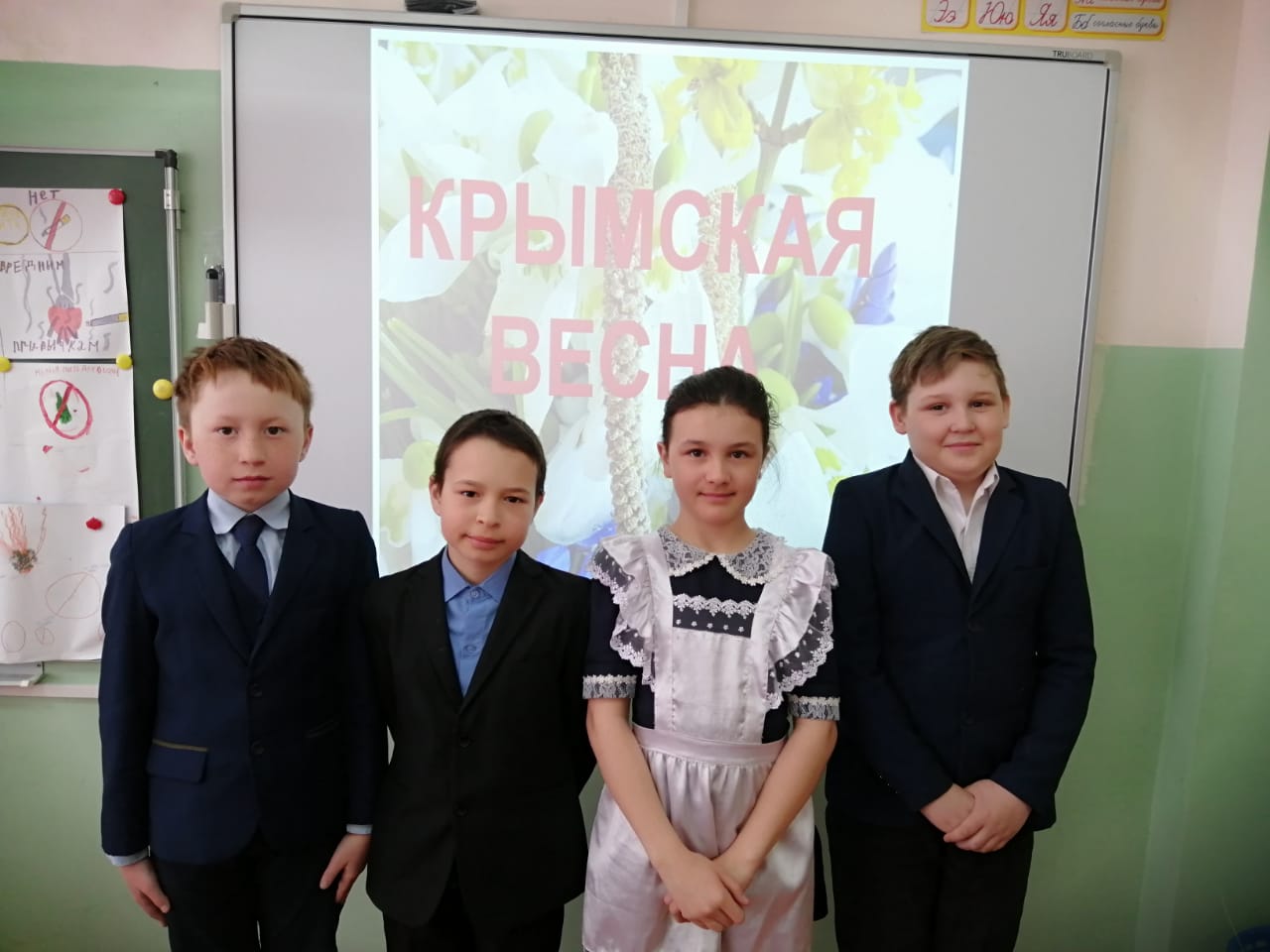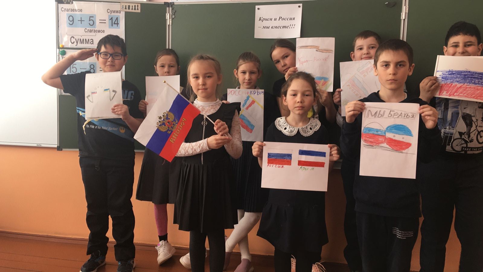 18 марта - день присоединения Крыма к России, это важное историческое событие! Сегодня, 18 марта учителя с ребятами вспоминали события, которые способствовали воссоединению Крыма с Российской Федерацией. По всей школе прошли уроки "Крымская весна". Учителя показали ребятам презентации, фильмы, связанные с этим событием. Наши педагоги смогли донести до детей важность и радость этого дня. Ребята читали стихотворения, в некоторых классах дети с педагогами выполнили творческое задание на соответствующую тематику: раскраски, поделки. Учителя рассказали обучающимся про мир, про Россию, про Крым. Все ребята слушали с интересом, задавали вопросы. Уроки оправдали все поставленные цели и задачи. Развить у подрастающего поколения чувства патриотизма и гордости за свою страну, формировать Российскую гражданственность - необходимое в современном обществе.