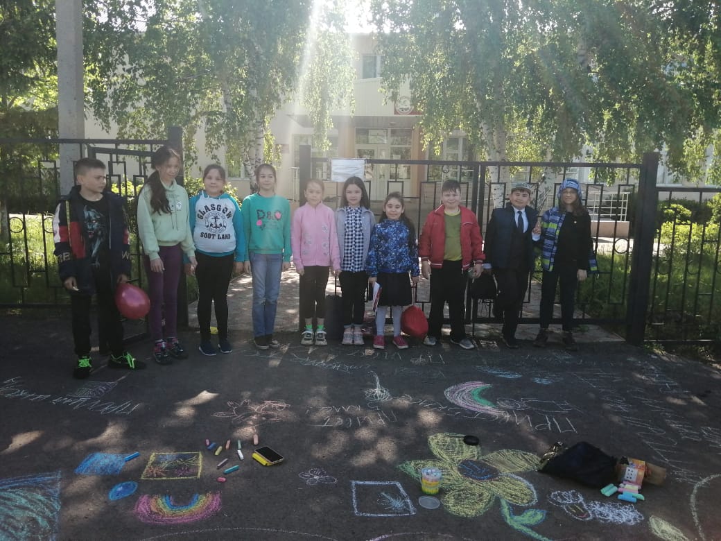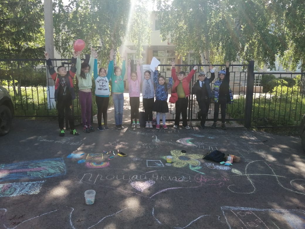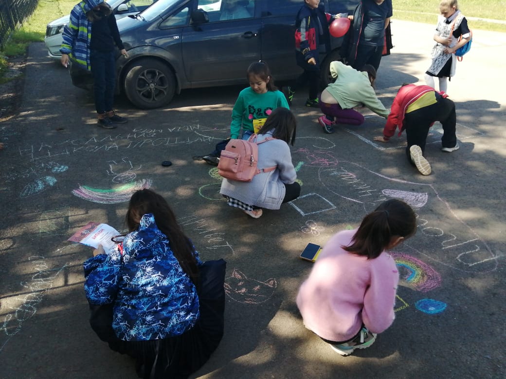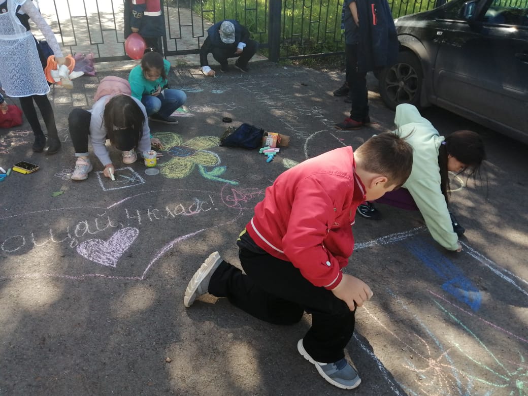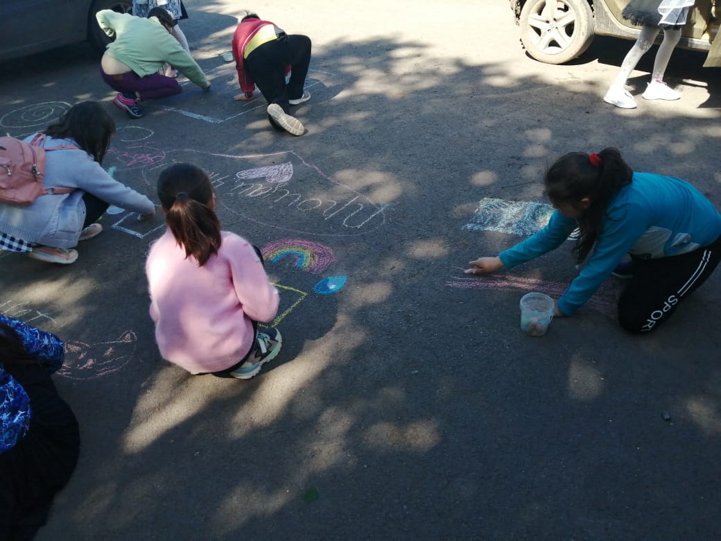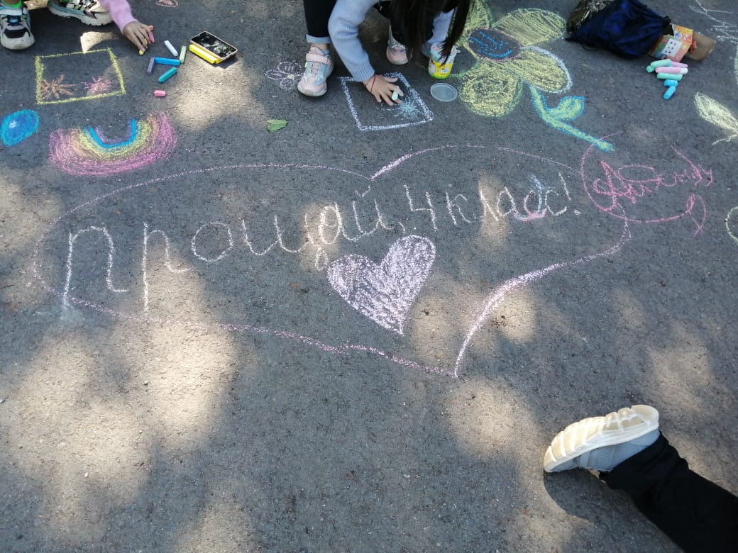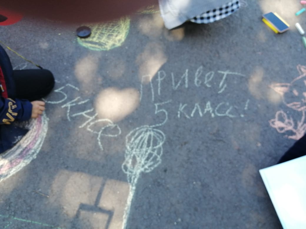 После линейки, по традиции, прошёл конкурс рисунков на асфальте.