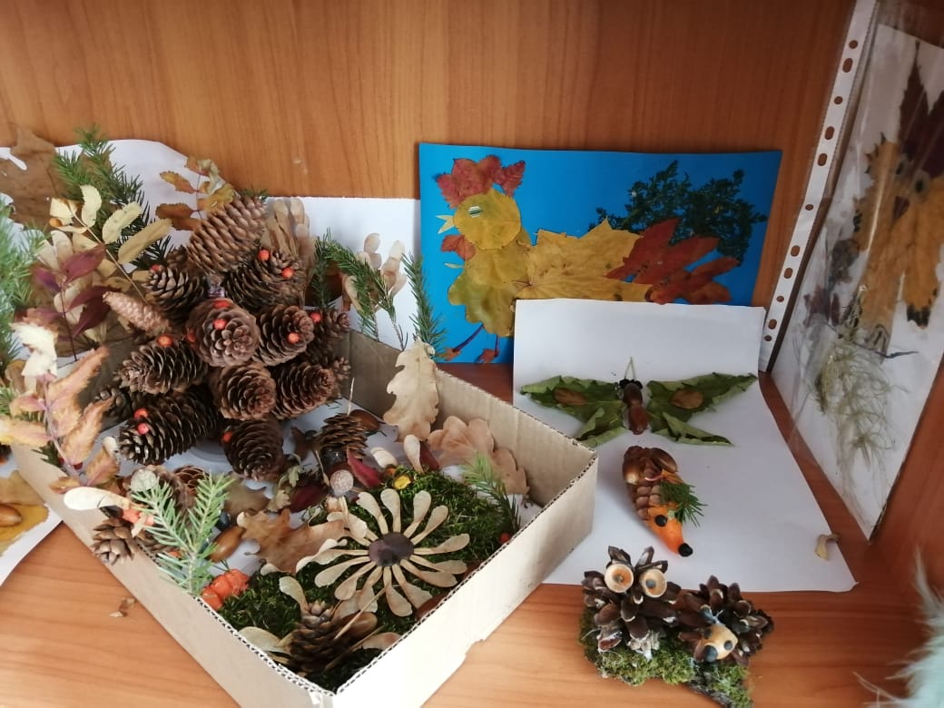Учащиеся 4 класса в октябре месяце 2021 года подготовили выставку "Сказочный лес" из природного материала.