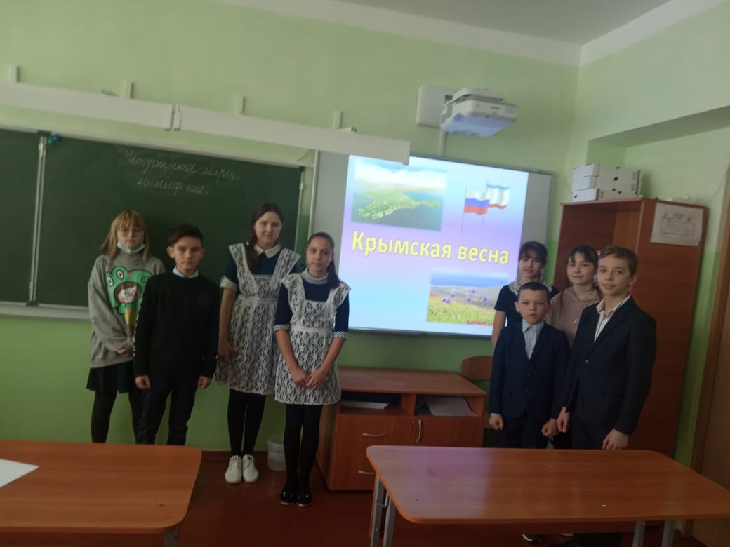 Тебе наступят, ясны дни.С 18 марта по 21 марта 2021 года в школе прошли мероприятия, приуроченные к Дню воссоединения Крыма с Россией: классные часы, просмотр Всероссийского открытого онлайн - урока, пубикация фотографий об отдыхе в Крыму в соц. сетях и др.