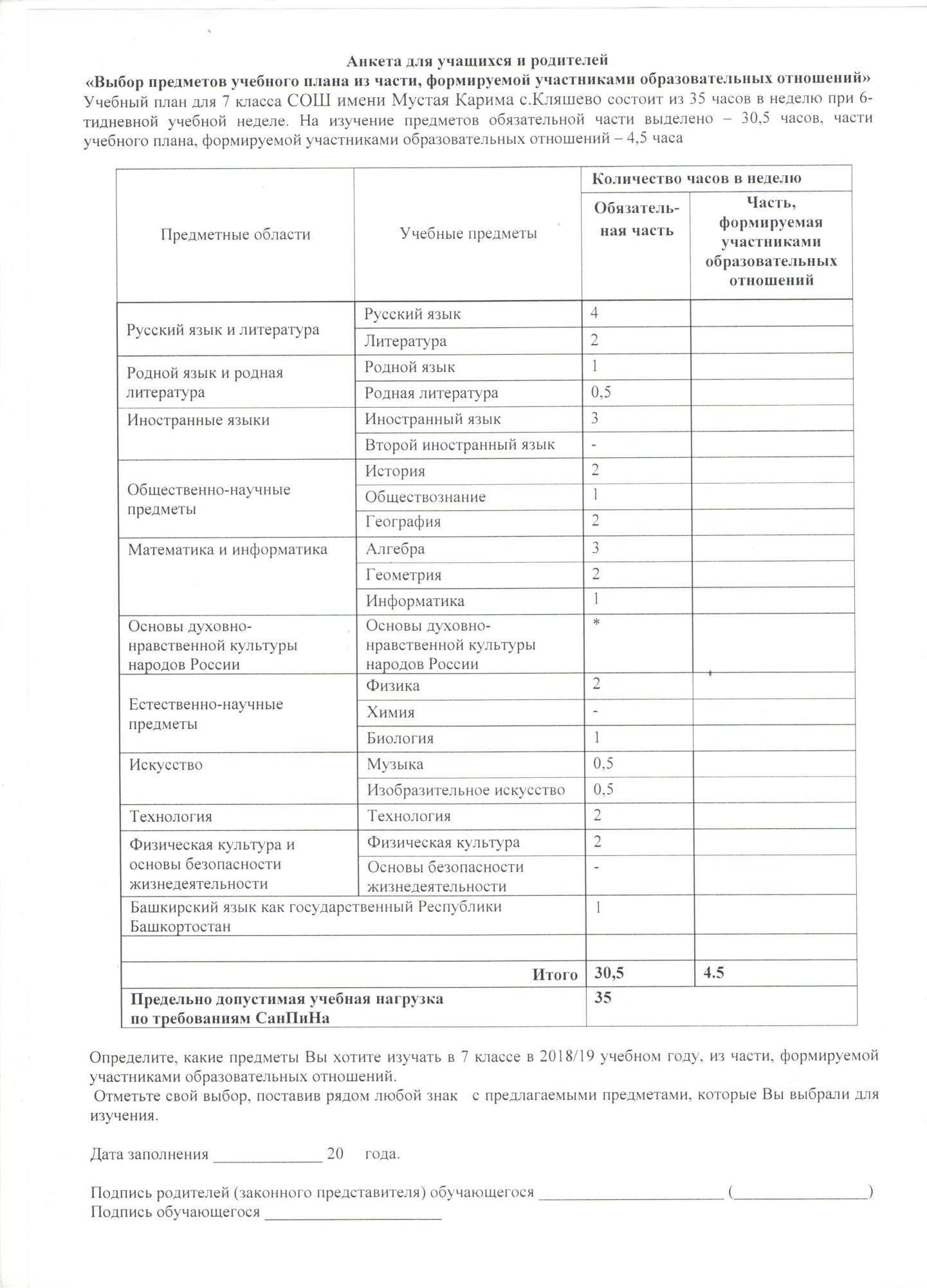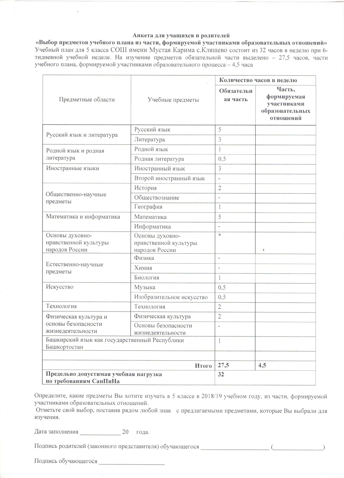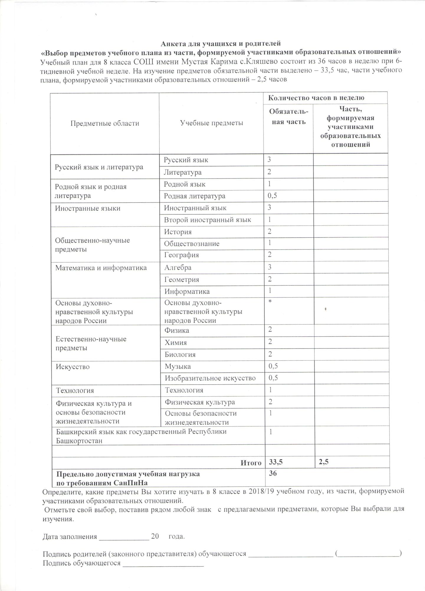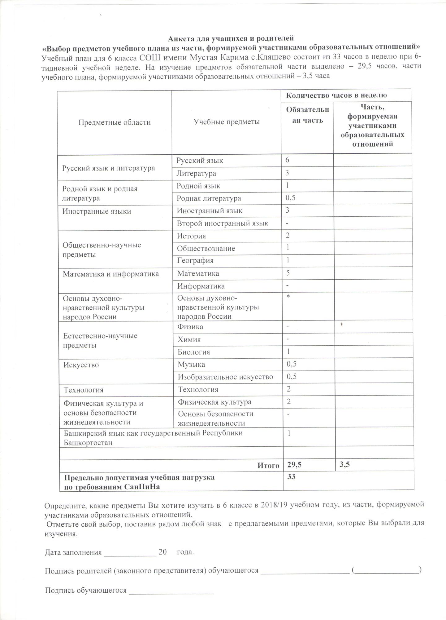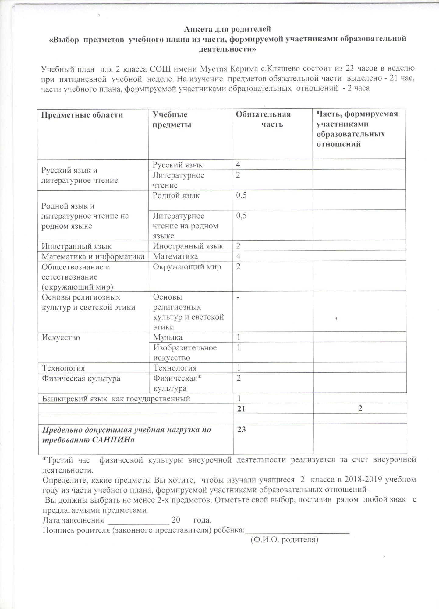 Анкета для родителей на выбор предметов 1-11 классы (2).doc