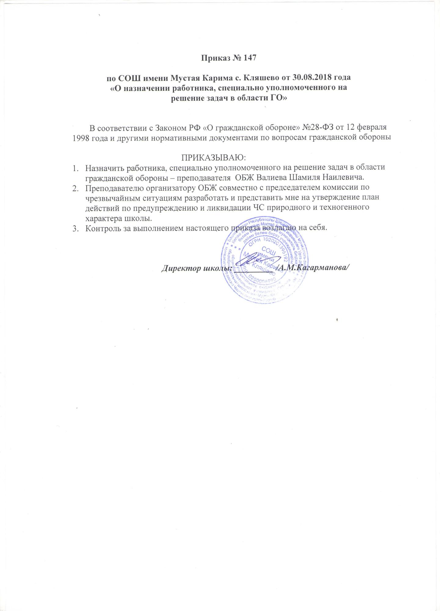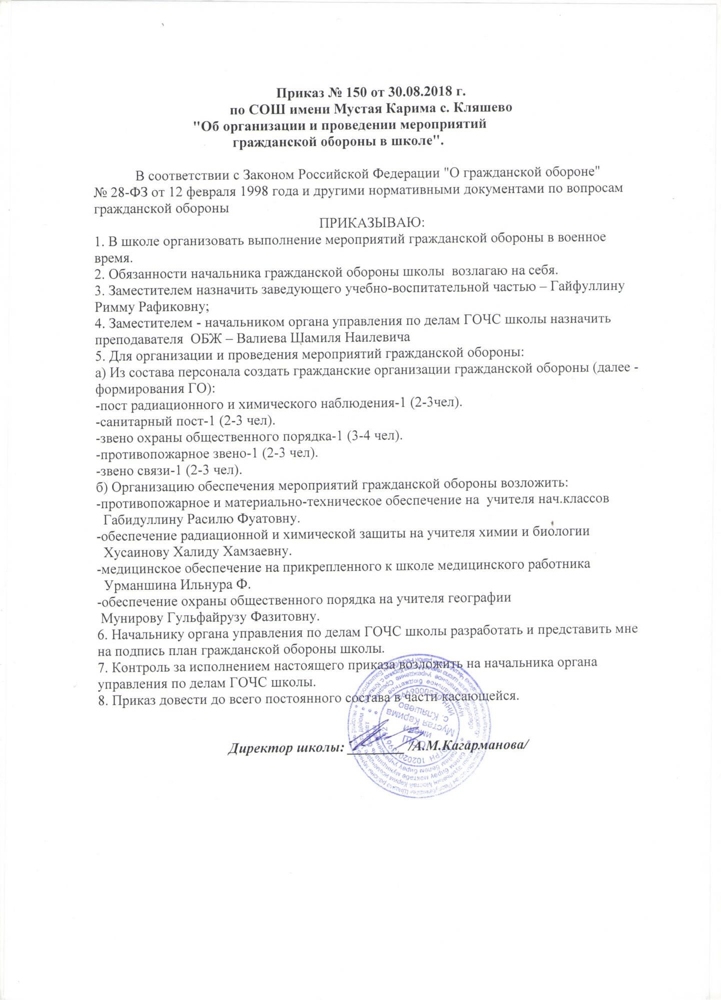 Гражданская оборона призвана обезопасить образовательное учреждение от угроз, которые возникают при ведении военных действий. Организация и ведение гражданской обороны проводится по тем же принципам, что и на других объектах, однако учитывается специфика учебной деятельности. Работа проводится на основании приказов и других документов по ГО и ЧС в школе